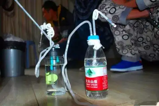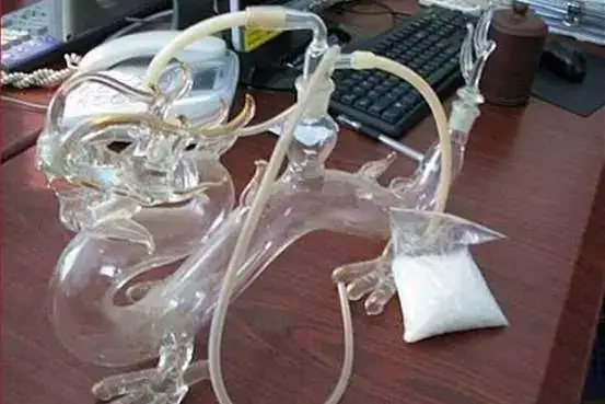 ▲冰毒采用烫吸的方法,上图是吸食必备的自制“冰壶”。